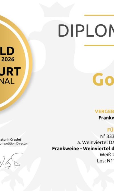 GROSSES GOLD bei der Frankfurt International Trophy für unsren Weinviertel DAC Grü...